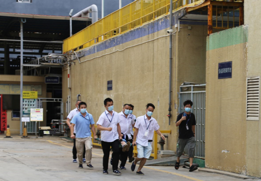 在6月30日下午3點半,演習準時開始。巡查員工發(fā)現(xiàn)火警,立馬撥打了內(nèi)部報警電話。煙霧彌漫,消防報警器立即響起。而此時深聯(lián)PCB廠員工們正有序的展開自己的工作,聽到警報聲起,員工們鎮(zhèn)定自若,捂住自己的口鼻,從逃生出口迅速有序的逃離事故發(fā)生地,并到指定位置集合。