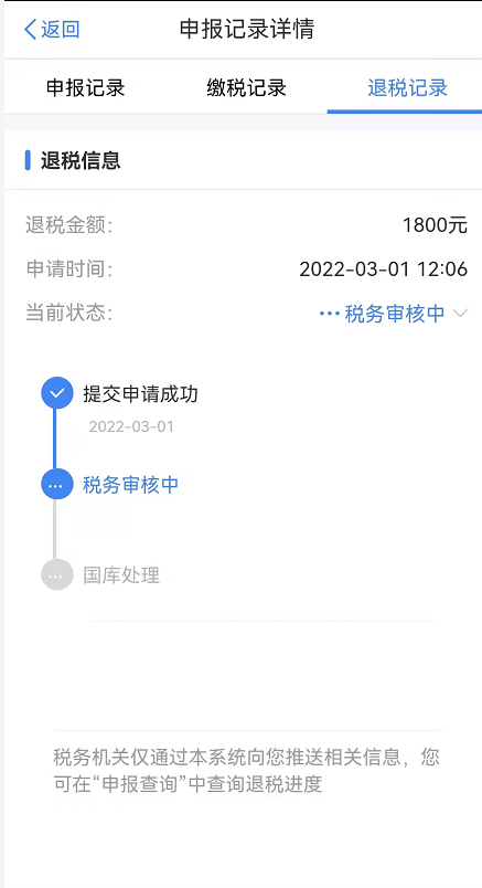 07退稅申請成功,等待稅務(wù)系統(tǒng)和國庫審核