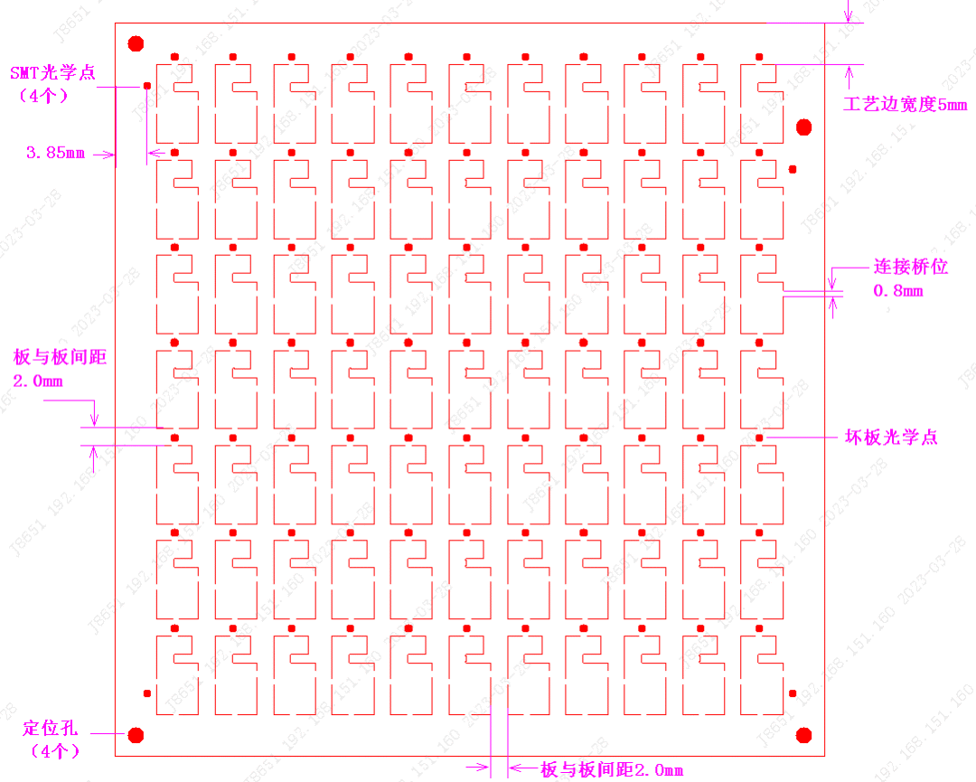 (3)工藝邊上增加4個直徑2mm的定位孔,其中一個需錯開5mm,便于防錯;