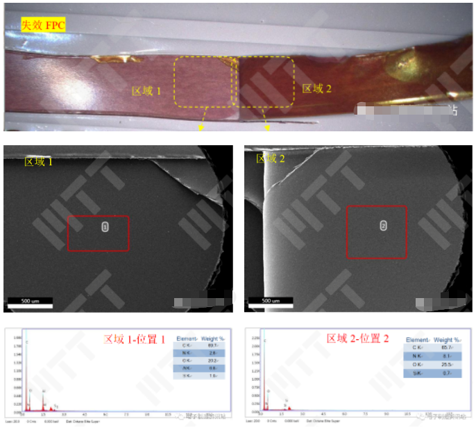 圖2.失效FPC鼓包區(qū)域分離界面分析結(jié)果