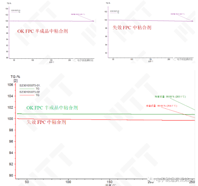 圖5. 失效FPC及OK FPC半成品中粘合劑TGA測試結(jié)果
