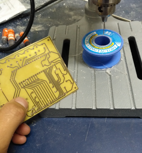 2、再使用丙酮或者鋼絲球,將黑色的墨粉擦除掉,這樣一個實驗PCB板便制作完畢了。