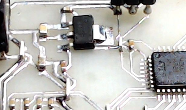 2、使用寬刀口烙鐵給電路板上錫,便于后面的焊接
