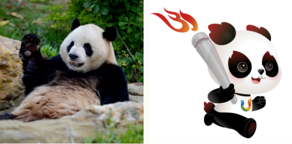 成都大運會吉祥物“蓉寶”(右圖)及其原型熊貓“芝麻”