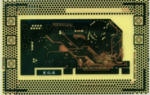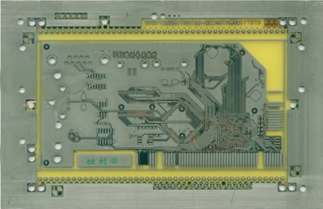 開料后的內(nèi)芯板進入內(nèi)光成像,用干膜(光致抗蝕劑)將內(nèi)芯板表面全部覆蓋。
