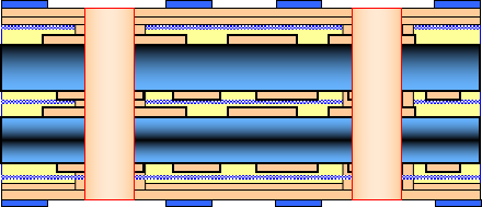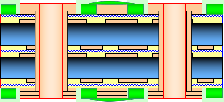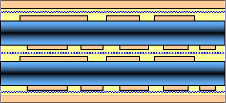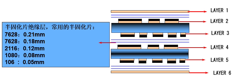 利用半固化片在溫度和壓力作用下具有流動性并能迅速固化的特性,將內(nèi)芯板與銅箔在高溫、高壓下黏合起來。