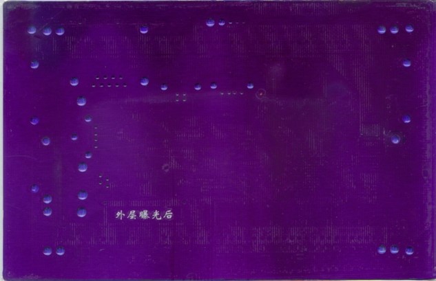 通過曝光機的紫外光將內(nèi)層線路圖形部分的干膜曝光,使其發(fā)生光聚合反應(yīng)。