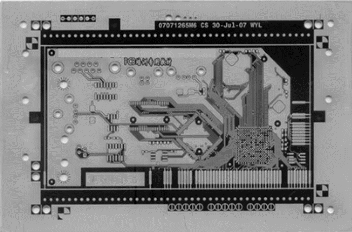 用干膜(光致抗蝕劑)將印制板表面全部覆蓋。