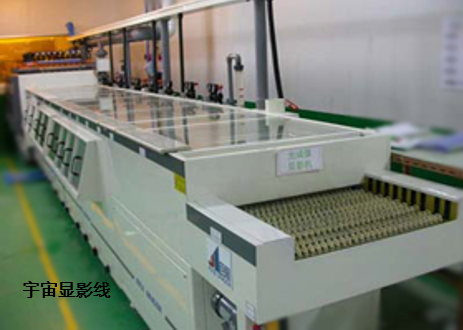 利用底片的圖形轉(zhuǎn)移作用,通過曝光機的紫外光將外層非線路圖形部分的干膜曝光,使其發(fā)生光聚合反應(yīng)。