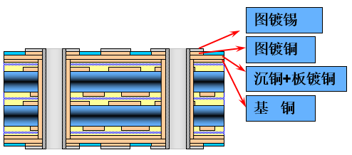 沉銅:利用化學(xué)反應(yīng),在孔壁上附著一層非常薄的銅層,目的是使孔壁的樹脂以及玻璃纖維表面產(chǎn)生導(dǎo)電性。