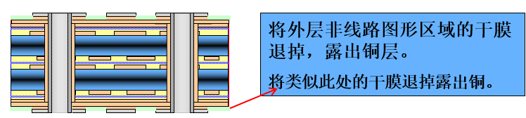將線路表面的干膜退掉,露出線路銅,形成所需要的內(nèi)層線路圖形。
