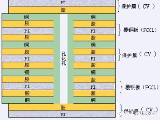 傳統(tǒng)的剛撓板是由剛性和柔性基板有選擇地層壓在一起的組成的。結(jié)構(gòu)緊密,以金屬化孔形成導(dǎo)電連接??紤]到可靠性和價格因素,生產(chǎn)廠應(yīng)試圖保持盡可能少的層數(shù)。