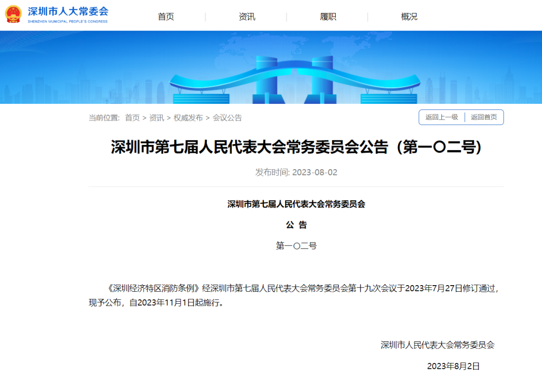 新修訂的《深圳經(jīng)濟(jì)特區(qū)消防條例》(以下簡稱《條例》)近日經(jīng)市人大常委會會議表決通過,并擬于今年11月1日起實施。