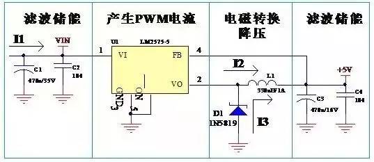 在脈沖電流I2流過(guò)電感的作用下,有部分電能轉(zhuǎn)換成磁能,電流逐漸增大,到一定時(shí)候,控制電路U1關(guān)斷了I2,由于電感的特性,電流不能突然消失,這時(shí)候二極管起作用了,它接替電流I2,所以叫續(xù)流二極管,可以看出,續(xù)流二極管是給電感用的,續(xù)流的電流I3是從C3的負(fù)端出發(fā),經(jīng)D1,L1后流入C3的正端,這里就相當(dāng)于抽水機(jī),利用電感的能量,把電容C3的電壓提高了。