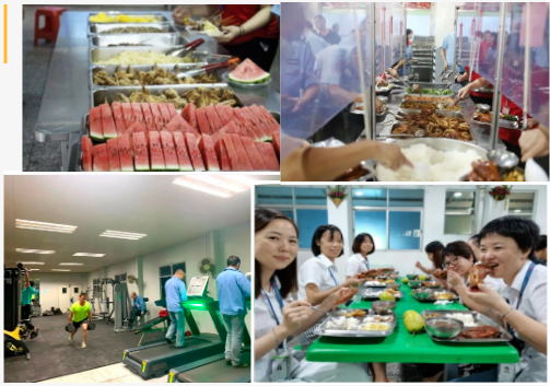 2、公司自營食堂,自助餐(早、中、晚),四菜一湯,中午提供水果;
