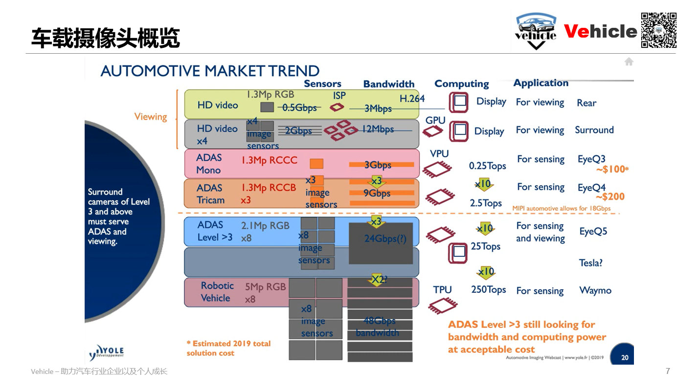 HDI廠了解到,根據(jù)Yole發(fā)布的信息,對于參數(shù)和環(huán)境感知的色彩都影響攝像頭的數(shù)據(jù)量,從而影響數(shù)據(jù)的傳輸以及數(shù)據(jù)處理器的算力。