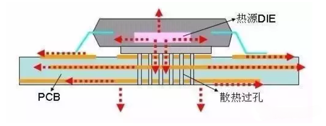 由于板材中的樹(shù)脂導(dǎo)熱性差,而銅箔線路和孔是熱的良導(dǎo)體,因此提高銅箔剩余率和增加導(dǎo)熱孔是散熱的主要手段。