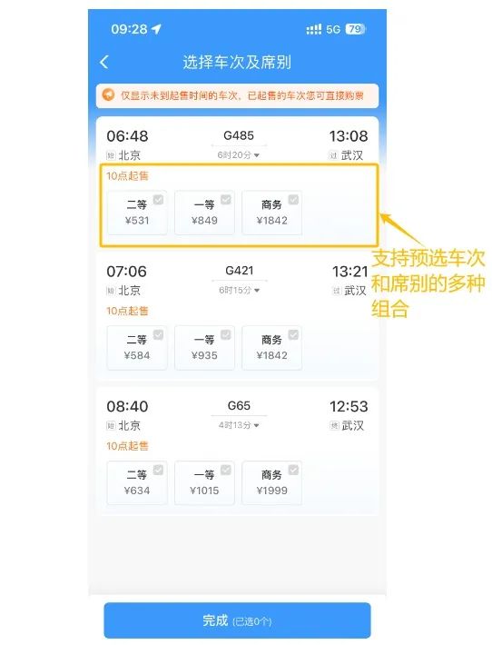 增加備選方案數(shù)量。優(yōu)化升級后,旅客可選擇預售期內(nèi)任意3個乘車日期,累計最多可選擇60個“日期+車次”的組合,每個車次可選多個席別。
