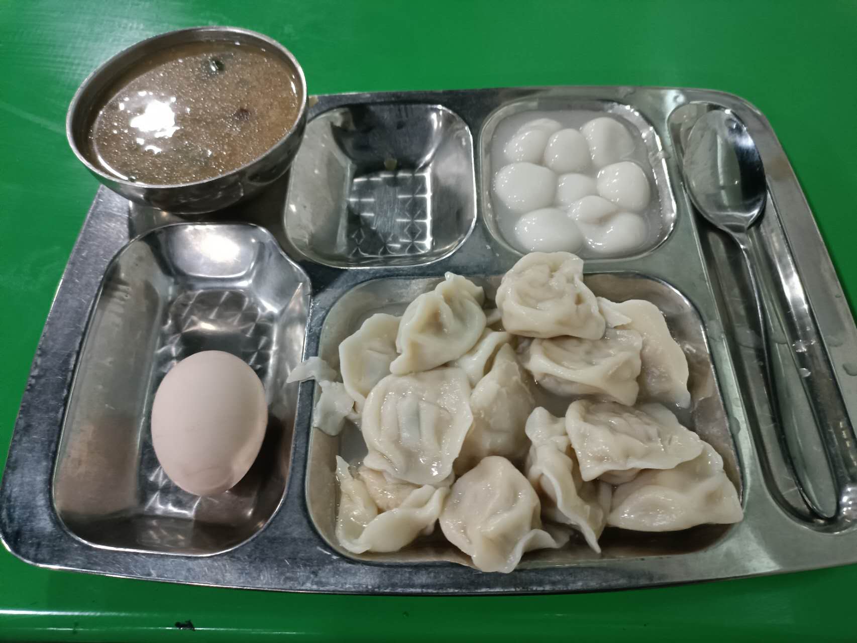2元錢的早餐,簡單卻營養(yǎng):一碗熱騰騰的皮蛋瘦肉粥,兩勺熱騰騰的餃子,一個圓滾的雞蛋。