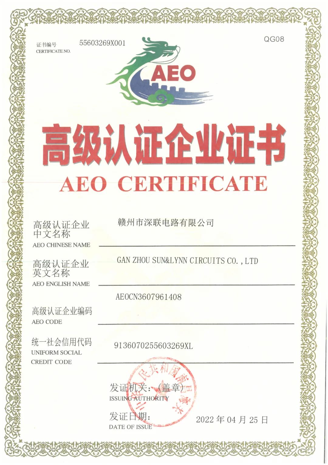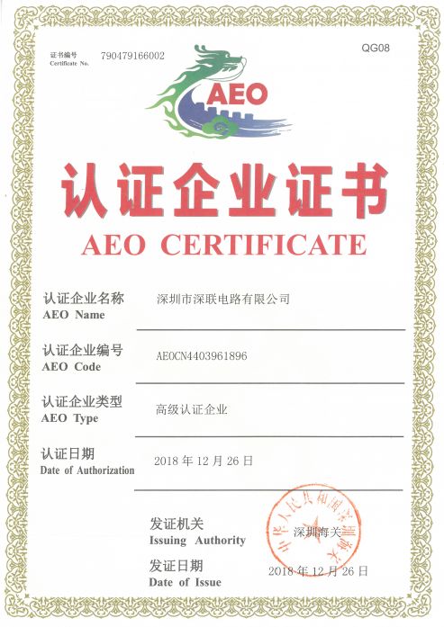 深聯(lián)電路2018年底首次榮獲得了AEO高級(jí)認(rèn)證,因?yàn)橛辛撕jP(guān)AEO高級(jí)認(rèn)證,不僅我們企業(yè)進(jìn)出口貨物查驗(yàn)更少、通關(guān)更快、手續(xù)更簡化、通關(guān)流通費(fèi)用減少等,同時(shí)還與國際接軌,享受與我國開展AEO互認(rèn)的國家和地區(qū)提供的通關(guān)便利。