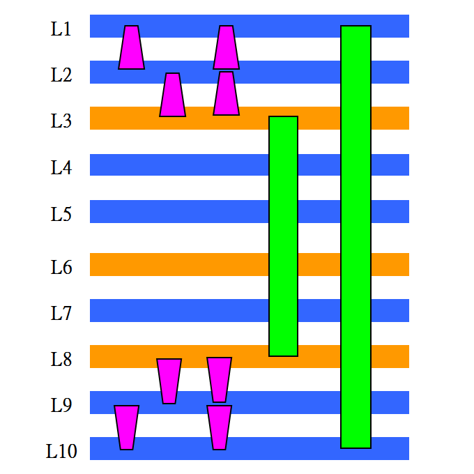 相反,利用微盲孔/埋盲孔來實(shí)現(xiàn)不同層之間的連接功能,可以釋放出更多的空間用于布線,從而提高了布線密度。