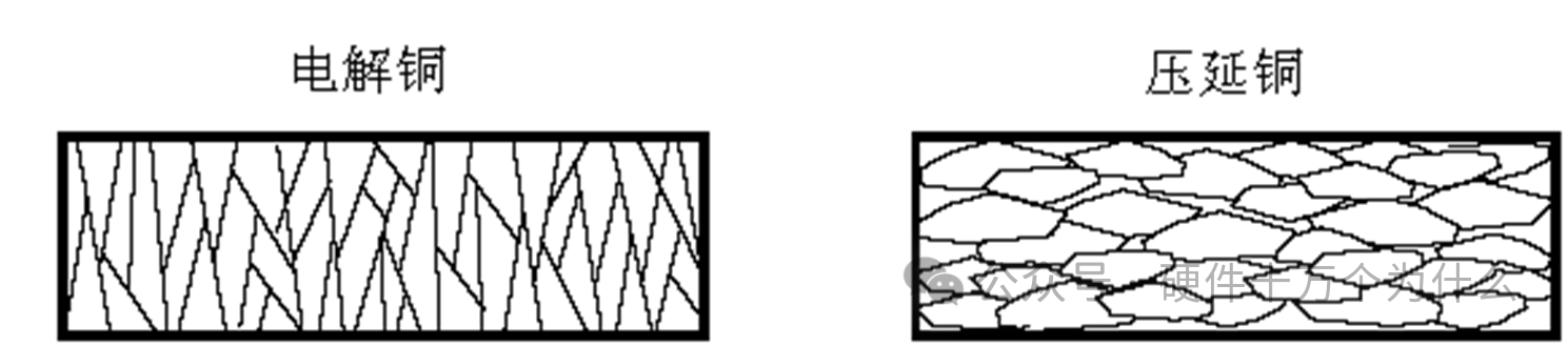采用電鍍方式形成,其銅微粒結(jié)晶狀態(tài)為垂直針狀,易在蝕刻時形成垂直的線條邊緣,有利于精細(xì)線路的制作;但在彎曲半徑小于5mm或動態(tài)撓曲時,針狀結(jié)構(gòu)易發(fā)生斷裂。