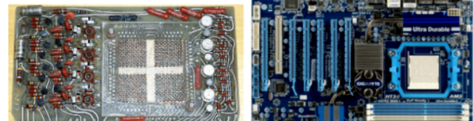 對比1968年計(jì)算器中的電路板和現(xiàn)代計(jì)算機(jī)主板
