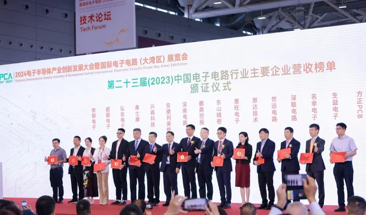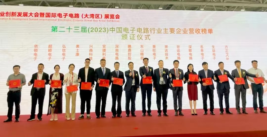 同時(shí),大會(huì)上舉辦了第二十三屆(2023)中國電子電路行業(yè)主要企業(yè)營(yíng)收榜單頒證儀式。我們深聯(lián)電路能夠在眾多優(yōu)秀企業(yè)中脫穎而出,獲得這一殊榮,是對(duì)我們企業(yè)實(shí)力和努力的高度認(rèn)可。這不僅是一份榮譽(yù),更是一份責(zé)任和激勵(lì)。