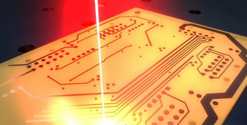用激光把設(shè)計(jì)圖“刻”在銅板上,形成精細(xì)的線路圖案。