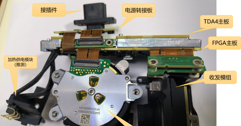 接收器使用的是索尼SPAD深度傳感器,同樣使用了軟硬結(jié)合板的方式,接收傳感器同樣使用bonding工藝與PCB進行連接,并封膠處理。