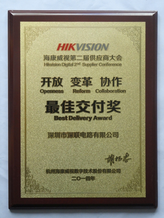 海康威視和科技合作的開始在2008。深聯(lián)的4-12層PCB和??低暫献飨群蟊缓?低曉u為“最佳供應(yīng)商準(zhǔn)時交貨率”。