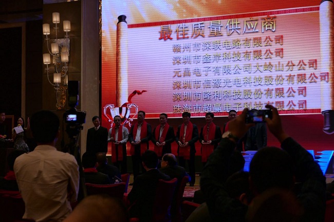 3月22日,深圳市帝晶光電科技有限公司于3月22日在深圳福永寶麗來(lái)國(guó)際大酒店舉辦了“聚立突破,共贏未來(lái)----帝晶光電2016年度供應(yīng)商大會(huì)”。贛州深聯(lián)FPC廠榮獲帝晶光電“2016年度最佳質(zhì)量供應(yīng)商”。