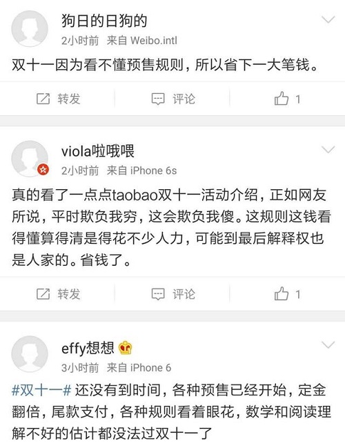 對此,網(wǎng)友們開始懷疑雙十一的誠意,并表示: