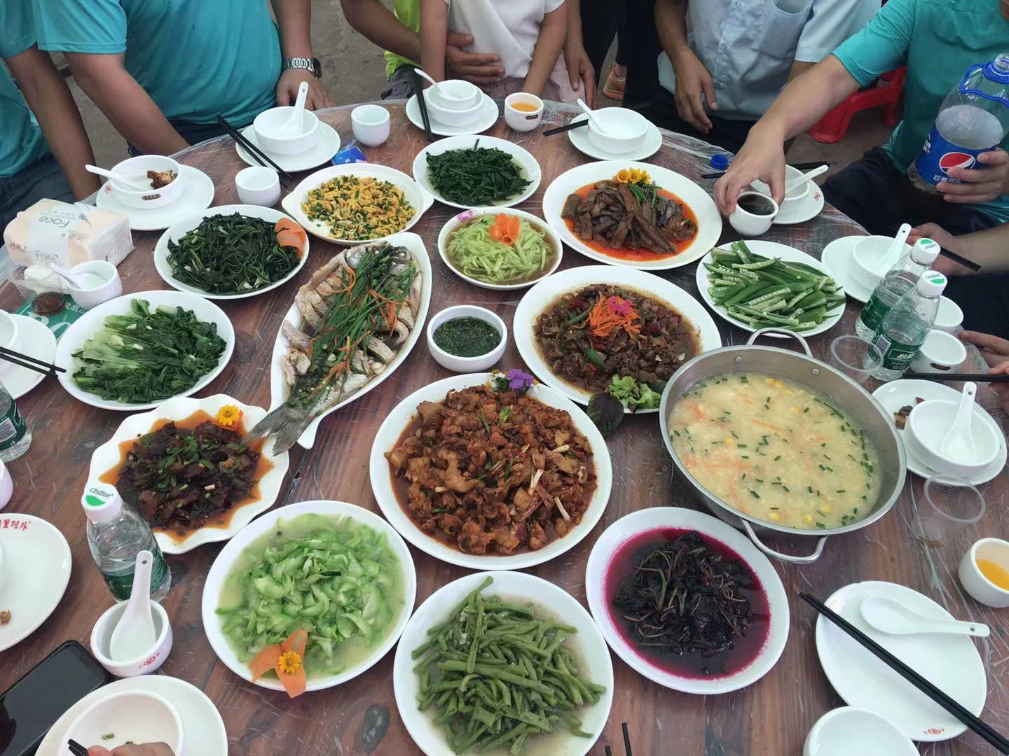 在大廚們的組織下,大伙兒開始熱火朝天的干起來,洗菜刷鍋、切菜、準備配料佐料、生火……一氣呵成。