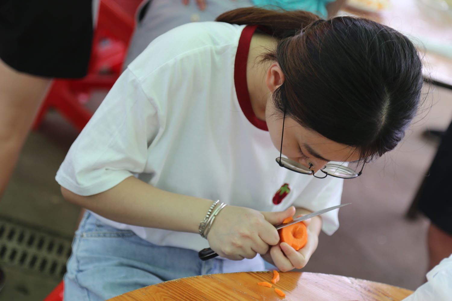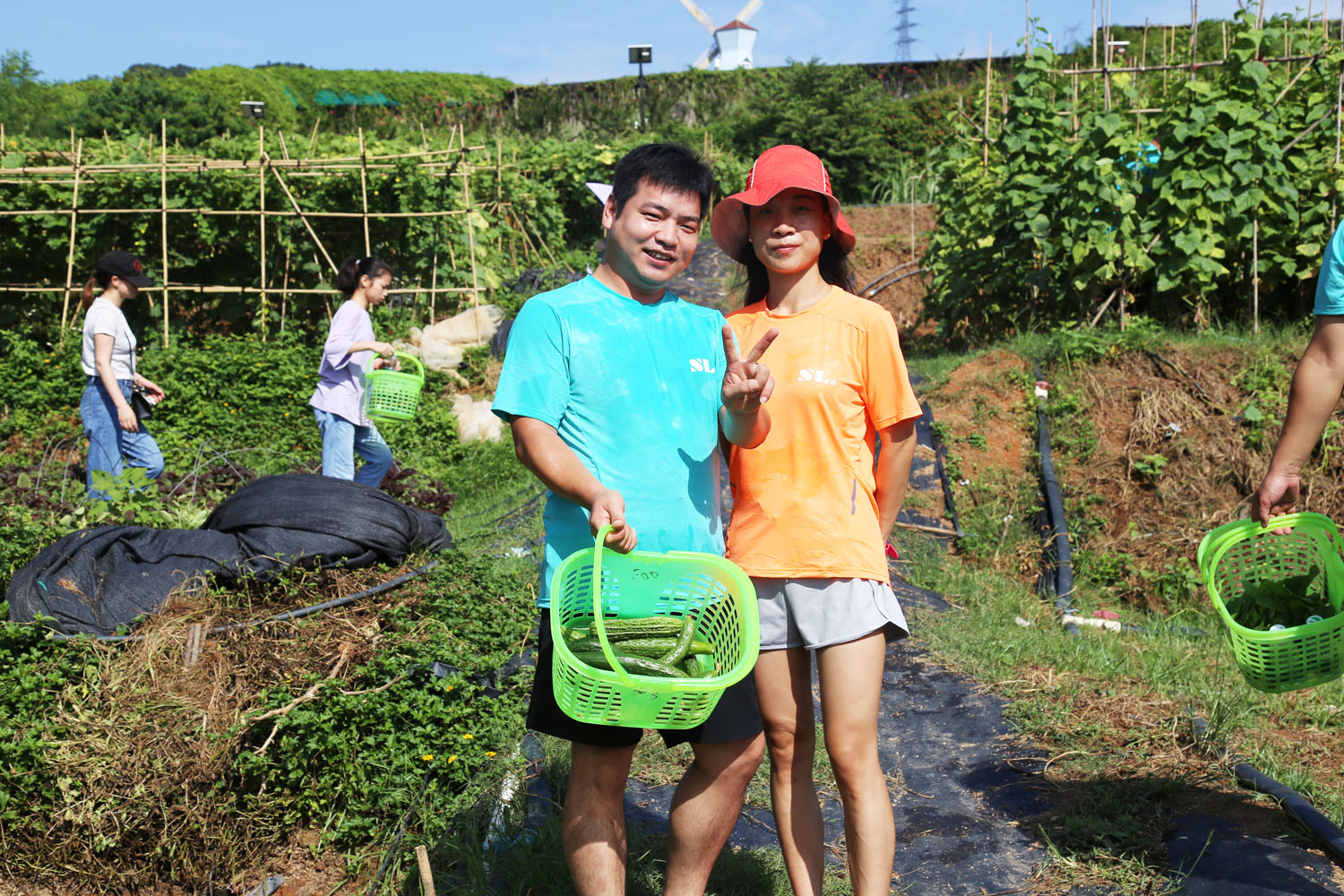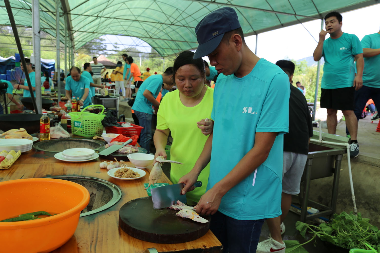 早上8:30,大家到達目的地,各小組在前臺拿到了菜籃子便沖向了我們的菜園,為自己組的廚藝大賽菜品準備原料。和同事們一起PK廚藝,團隊分工,互幫互助,場面又溫馨熱鬧,不一會兒,大家的菜籃子里裝滿了有機蔬菜,正在一籃一籃往野炊區(qū)域傳送,分工明確。