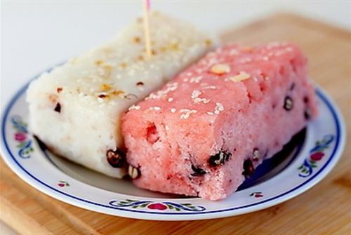 重陽糕亦稱“花糕”,漢族重陽節(jié)食品。流行于全國大部分地區(qū)。蒸重陽糕方法與蒸年糕相同,不過蒸糕要小一點,糕要薄一點。以米粉、豆粉等為原料,發(fā)酵,更點綴以棗、栗、杏仁等果馕、加糖蒸制而成。為了美觀中吃,人們把重陽糕制成五顏六色,還要在糕面上灑上一些木犀花(故重陽糕又叫桂花糕),這樣制成的重陽糕,香甜可口。