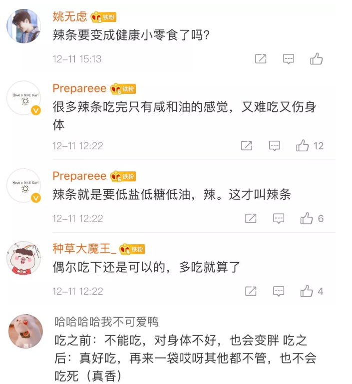 不少網(wǎng)友表示,有了明確國家標(biāo)準(zhǔn)后,辣條減油減鹽,不至于吃了傷身體,有利于年輕人“佛系”養(yǎng)生。