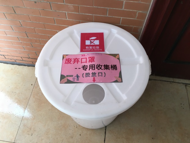 定點(diǎn)發(fā)放口罩并設(shè)立回收桶