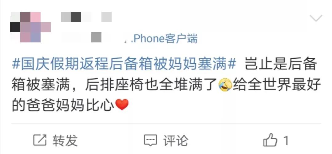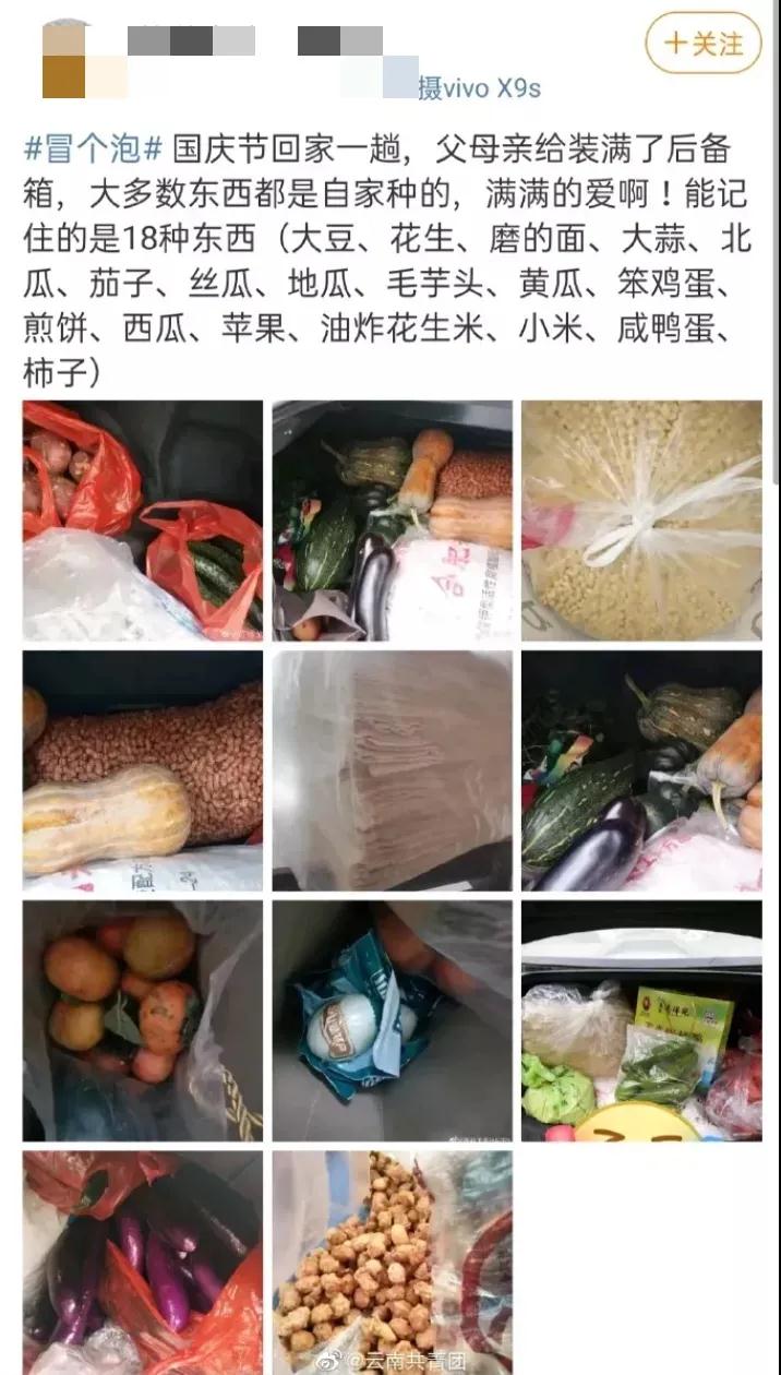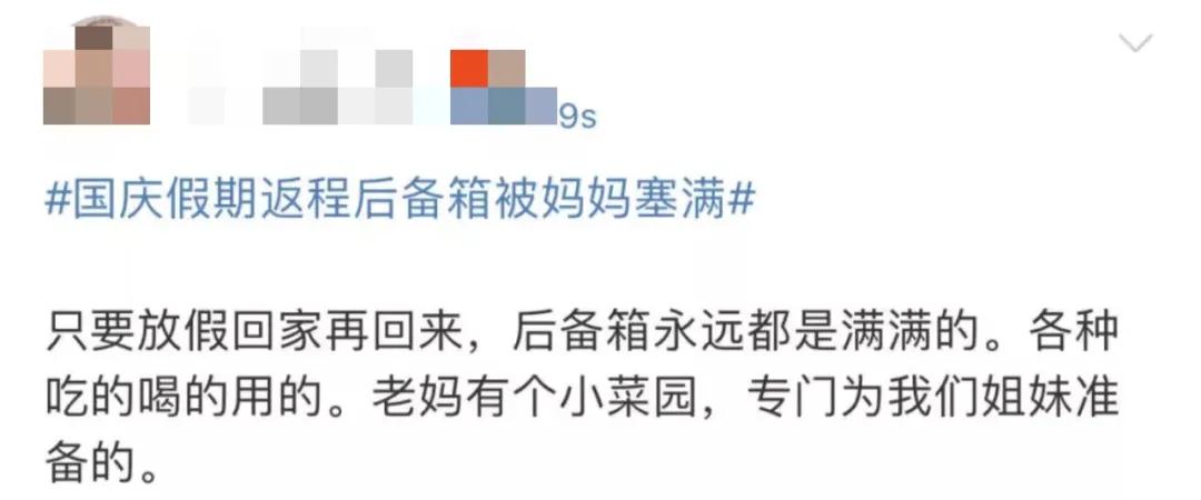 被爸媽塞滿的后備箱,太暖心