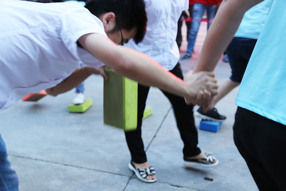 選手們彎腰、抬腳、換石,只見選手們手腳并用靈活向前,因?yàn)橄拗?,方寸之間,前進(jìn)的每一步都變得十分艱難,無論是觀眾還是參賽隊(duì)員都屏氣凝神,在追求平穩(wěn)的同時(shí)也與時(shí)間進(jìn)行著較量。
